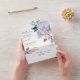 Modern wedding all in one invitation featuring light blue/ dusty blue watercolor hydrangeas with pastel pink , blush, peach , white roses, peonies, sage eucalyptus leaves, branches and foliage. Muted soft and dreamy romantic shades spring summer watercolor floral designs to match with your themed wedding.