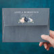Dusty blue floral geometric wedding envelope featuring elegant bouquets of navy / Dusty blue, white , blush , peach rose and sage green eucalyptus leaves and elegant glitter geometric neutral frame. Please contact me for any help in customisation or if you need any other product with this design.
