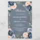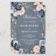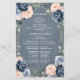 Dusty blue floral geometric wedding program featuring elegant bouquets of navy / Dusty blue, white , blush , peach rose and sage green eucalyptus leaves and elegant glitter geometric neutral frame. Please contact me for any help in customisation or if you need any other product with this design.