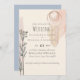 Modern BOHO wedding theme is featured here with colours dusty blue and peach. Graphics of dream catcher and herbs create a lovely aesthetic, warm and inviting for your woodland, outdoors, garden, barn boho-themed wedding.