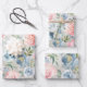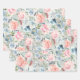 Dusty Blue Peony & Pink Roses Garden Wrapping Paper Sheet