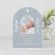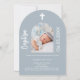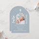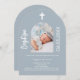 Dusty blue photo arch script Baptism Invitation