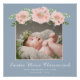 Chic Pink floral New Baby Girl Shower or nursery featuring a blush pink and Dusty Blue frame over your choice of photo.