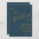 Dusty Blue QR Code All In One Gold Script Wedding Invitation