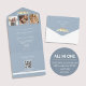 Modern and romantic, this dusty blue all-in-one wedding invitation features three photo slots, a stylish faux gold lovebirds design, and a built-in QR code for easy RSVP access. Perfect for eco-conscious couples—no envelope is required! The clean layout includes space for your wedding website and personalised details, making this a convenient and elegant choice for your celebration.