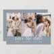 QR Code - Modern and Elegant Landscape Horizontal Three (3) Photo Save the Date Wedding Magnet with hand lettered script typography. The save the date invitation magnet includes script typography and chic and simple design that you can add your customised engagement photograph picture to.