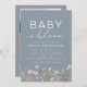 Dusty Blue QR Code Wildflower Baby in Bloom Shower Invitation