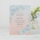 This artwork features a soft ombre background transitioning from a cool sky blue to a warm peachy pink. Elegant watercolor roses in shades of dusty blue adorn the corners, accompanied by delicate green foliage. The aesthetic is ethereal and romantic, perfect for a whimsical seasonal event. A palette of pastel tones creates a serene and polished atmosphere.