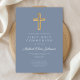 Dusty Blue Religious Cross Boy First Communion Invitation