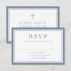 Dusty Blue Religious Cross Boy First Communion RSVP Card