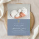 Dusty Blue Religious Cross Boy Photo Baptism Invitation