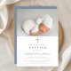 Dusty Blue Religious Cross Boy Photo Baptism Invitation