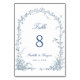 Dusty Blue Romantic Botanical Arch Garden Wedding Table Number