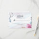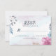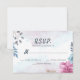 RSVP card design features dusty blue roses and pink flowers.