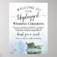 This beautiful "unplugged" sign provides a graceful means of welcoming guests to your wedding ceremony while respectfully requesting them to refrain from using their phones, cameras, or any other devices that may cause disturbance. The sign showcases a sophisticated layout, adorned with intricate calligraphy and a captivating long-stemmed rose in shades of pale dusty blue or powder blue, reflecting in water with gentle ripples. The customisable message conveys a warm invitation, encouraging guests to be fully present and engage in the ceremony without any interruptions. It states, "Please turn off your phones, cameras, and devices so we can all enjoy the ceremony without disruptions."