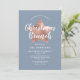 Personalised Dusty Blue Rose Gold Star Christmas Brunch Invitation.
