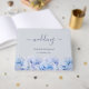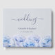 This beautiful wedding guest book features a row of blue roses on both the front and back with elegant calligraphy font.