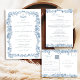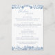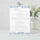 This elegant wedding details card, inspired by both toile and chinoiserie design, features a delicate blue climbing rose vine motif framing the edges. It provides essential information for guests, including reception details, accommodations, and transportation options. Perfect for vintage botanical, garden, or romantic wedding themes, this card blends timeless sophistication with practical functionality. Designed to complement any elegant wedding stationery suite, it adds a refined and graceful touch to your celebration.