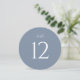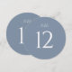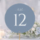 Elegant round wedding table number featuring a soft dusty blue background with clean white typography. The minimalist design with a large, easy-to-read number adds a refined and cohesive touch to your reception tables.