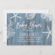 Rustic Wood Beach Starfish & Seashells Dusty Blue Baby Shower Invitations.