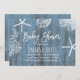 Dusty Blue Rustic Beach Seashells Baby Shower Invitation