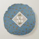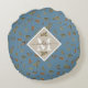 Dusty Blue Rustic Brown Leaves Monogrammed Round Cushion