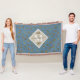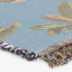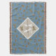 Dusty Blue Rustic Brown Leaves Monogrammed Throw Blanket