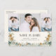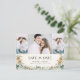 This elegant boho winter Save the Date photo announcement postcard features beautiful hand-painted watercolor dusty blue leaves and berries, cream anemone flowers, sage greenery, and pinecones arranged as a stylish frame on an ivory | cream background with 3 photos. The back includes text for personalising. Find matching items in the Winter Dusty Blue Floral Wedding Collection.