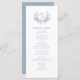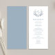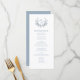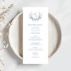 Elevate your wedding reception with this wedding menu card, featuring simple elegant calligraphy and a refined bride and groom monogram. Designed in stylish dusty blue, this reception dinner template showcases a classic wreath laurel motif with delicate greenery leaves foliage, adding a timeless and sophisticated touch to your rehearsal party table. The traditional typography design and classy ampersand initials create a personalised and elegant aesthetic. Perfect for a chic wedding setting