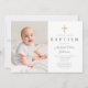 Dusty Blue Script Cross Boy Photo Baptism Invitation