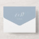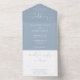 All in one wedding invitation featuring elegant hearts script typography and monogram initials on a dusty blue background. The invitation includes a perforated RSVP card that’s can be individually addressed or left blank for you to handwrite your guest's address details. Designed by Thisisnotme©