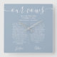 Dusty Blue Script His And Hers Wedding Vows Square Wall Clock