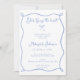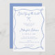 She's Tying the Knot Shower Invitation in dusty blue with a wavy hand drawn border and a cute bow