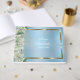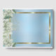 Design features a bouquet of beautiful white floral and a dusty blue shimmering background. It can be personalised with your own information.