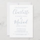 Featuring signature style names, this elegant, modern, simple engagement party invitation can be personalised with your information in dusty blue lettering. Designed by Thisisnotme©