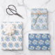 These fun and whimsical wrapping paper sheets features dusty blue and silver elegant flowers.