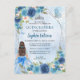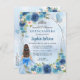 Dusty Blue Silver Glam Floral Princess Quinceañera Invitation Postcard