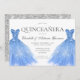 Modern Dusty Blue Navy Blue Silver Grey Princess Gown Dress Glitter Sparkle Butterfly 15th Birthday Quinceanera Invitation