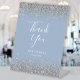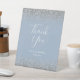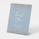 Dusty Blue Silver Glitter Wedding Thank You Pedestal Sign