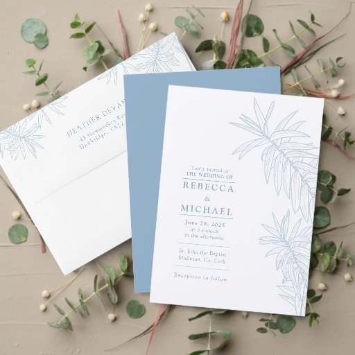 Dusty Blue Simple Botanical Leaves Wedding Designed by Amour Paperie