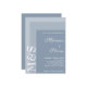 Simple modern chic script wedding invitation suite for brides who are adorning their ceremonies in dusty blue. All set on modern white font with initials on the side.