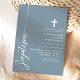 Celebrate the sacred occasion of a baptism with this elegant dusty blue invitation. Featuring a minimalist design with modern script and a delicate cross, this invitation is perfect for inviting friends and family to join in this special event. The soft colour and simple, clean lines add a touch of sophistication and grace, making it ideal for such a meaningful celebration. Customise the details to create a unique and memorable invitation for your child's baptism.