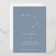 Simple, silver foil print wedding Save the Date card with white, stylised script on dusty blue colour background. Edit names, date and location with your own wedding information. Change foil colour if desired. Background colour may be changed as well to match your wedding colour scheme.