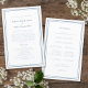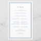 A clean and modern dusty blue wedding ceremony program designed for couples who love understated elegance. The layout features clear typography, a refined script accent, and a structured order of service that guides guests through the ceremony with ease. Perfect for church weddings officiated by a Reverend, this minimalist program pairs beautifully with classic, modern, or formal wedding décor. Customise the wording, timeline, and ceremony details in Zazzle’s design tool to match your day.