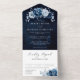 Dusty Blue Slate Navy Floral Botanical Wedding All In One Invitation