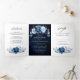 Dusty Blue Slate Navy Floral Botanical Wedding Tri Tri-Fold Announcement
