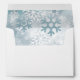 This design features a soft bokeh blue sky highlighting a snowfall on a bed on white. This design is part of the Dusty Blue Snowflake Modern Wedding Suite Collection.