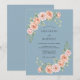 This design showcases a serene dusty blue backdrop complemented by watercolor roses in soft peach and blush pink tones. Delicate sprays of greenery and foliage create an airy, romantic feel for a springtime event. The artistic botanical elements offer a graceful and polished aesthetic. This palette evokes a peaceful and elegant atmosphere for a seasonal marriage.