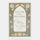 Make a grand entrance with this luxurious wedding welcome sign featuring a rich gold background and stained glass details. Embellished with soft cream roses, this design blends timeless elegance with artistic flair. Personalize with your names and date for a sophisticated touch to your ceremony or reception.