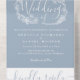 All in one wedding invitation featuring pretty string lights, hand-drawn floral garland and chic typography on a dusty blue background. The invitation includes a perforated RSVP with your wedding website QR code and details. Designed by Thisisnotme©
